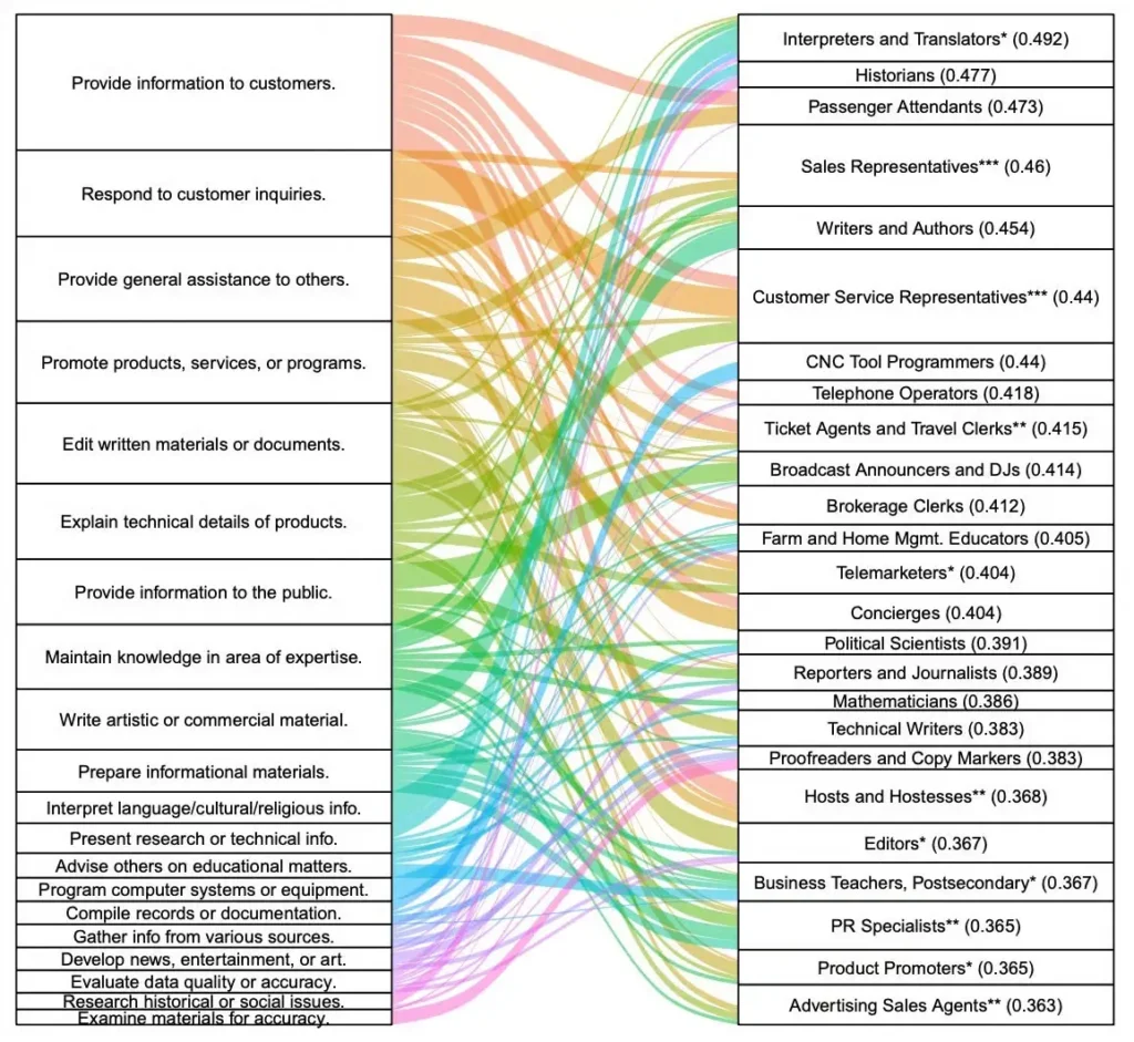 The study found roles in knowledge-work register the highest AI applicability scores, while mechanical labor is the least impacted.