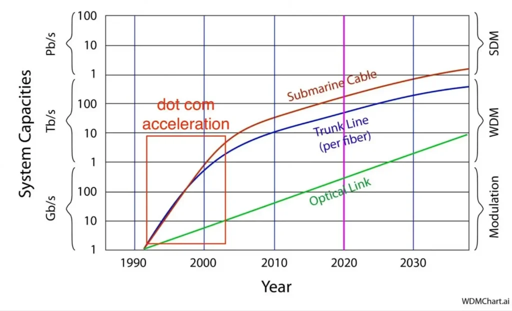 The AI data center buildout mirrors the build-out of optical fiber to offices and homes during the dot-com era.