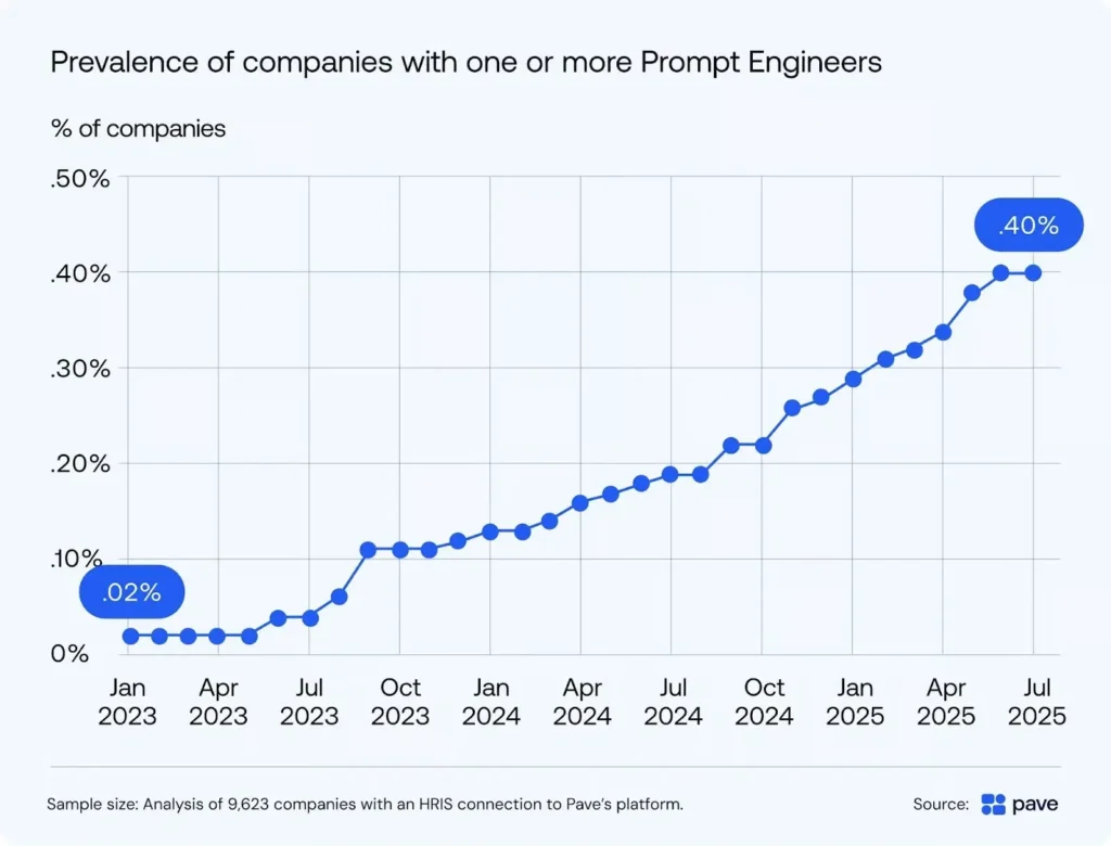 The percentage of companies reporting to have prompt engineers. (Source: Pave Data Lab).